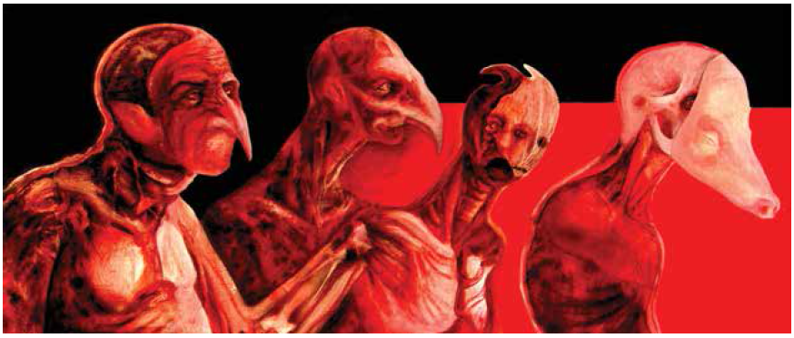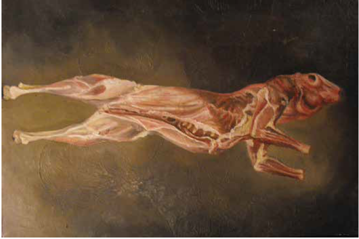 El arte de Asdrúbal Max puede catalogarse como monstruoso porque presenta la crudeza que nos remite a la humanidad perdida, aquella que en la deformidad de la piel, los huesos y nervios que aparecen plasmados nos lleva a preguntar qué nos hace humanos. Hombre y animal se fusionan para emerger en una misma imagen donde la mutación es transformación; después de todo seguimos siendo instintivos y conservamos esa parte animal que por medio de las pinturas nos permite reinterpretarnos.
