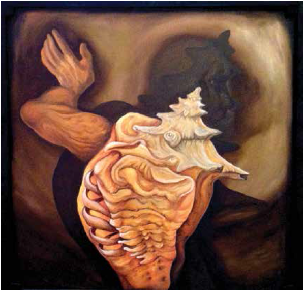 Algunas de sus imágenes remiten a lo profano; nadie sabe quién es quién ni qué pertenece a cada lugar. En el aparente caos de objetos aparecen imágenes de una existencia desbordada que logran una armonía de formas y emociones, y sólo quien ha caminado por el borde del abismo logra entender. En este sentido, los rostros y formas fusionadas redimen lo profano y lo vuelven casi celestial, pues basta ver en la pintura el dolor de la existencia para constatarlo.