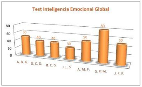 Todo el grupo ha mejorado su inteligencia emocional global, A.B.G.(70);A.M.P.(60);S.P.M. (90); J.P.P. (60), aunque 3 discentes continúan por debajo de los límites normales: D.C.D. (50); B.C.S. (50) y J.LS.(40).