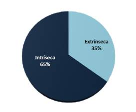 En términos motivacionales prevalece el tipo de motivación intrínseca (65%) por sobre la extrínseca (3) especto de la primera se impone porcentualmente la "vocación" como elemento fundamental, por el contrario, los porcentajes más altos para la motivación extrínseca indican el hecho de hacer carrera en educación.