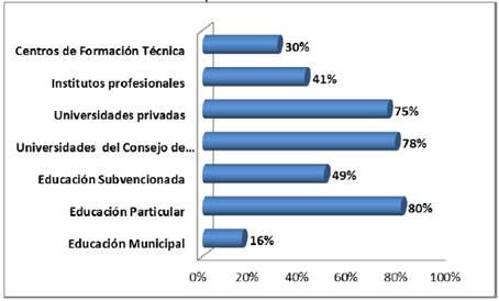 En el ámbito de la percepción que tienen los estudiantes de las instituciones de educación superior, se aprecia que las universidades tradicionales (adscritas al consejo de rectores) y las privadas lideran las preferencias por sobre los institutos y centros de formación técnica5. Asimismo, preocupa que el 83% de los estudiantes encuestados valoren la educación secundaria particular, la educación particular subvencionada (48%) por sobre la pública (9%).