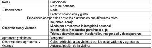 Las emociones compartidas por los alumnos ubicados en los tres roles la dinámica del maltrato entre iguales: observadores, agresores y víctimas