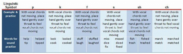 Crumpler (n.d.) has summarized the pronunciation of the -ed ending of the past tense of regular verbs and has explained some teaching guidelines through charts for instructional purposes with English Language Learners (ELLs) as follows in the scheme 1: