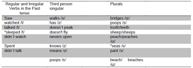 Based on the objectives of the Wug Test, the following section pretends to give an overview of the theoretical foundation of the different morphemes for this study: pronunciation of the plural forms of nouns, third person singular verb endings, and past tense of regular verbs.