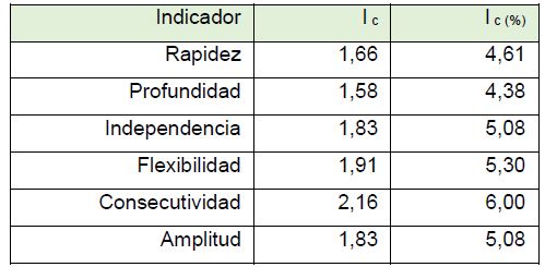 En la Tabla 2 aparecen los resultados resumidos de los valores del índice de la muestra y el índice porcentual.