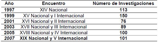 De un total de 629 investigaciones presentadas a los ENIN (ver Tabla 1), se seleccionaron 40 estudios que declaran tener como elemento de estudio la FPP. Si bien, dentro de la base de datos se encontraron más investigaciones, estas no correspondieron con los criterios de selección establecidos. Estos estudios permiten observar la diversidad que existe respecto a la forma de estudiar-objetivar la noción de FPP.
