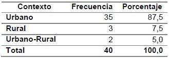 En cuanto al sector, las investigaciones están centradas en el sector urbano con 35 estudios, a diferencia del sector rural, con 3 estudios. Se observan dos estudios que integran los dos contextos (Ver Tabla 5).