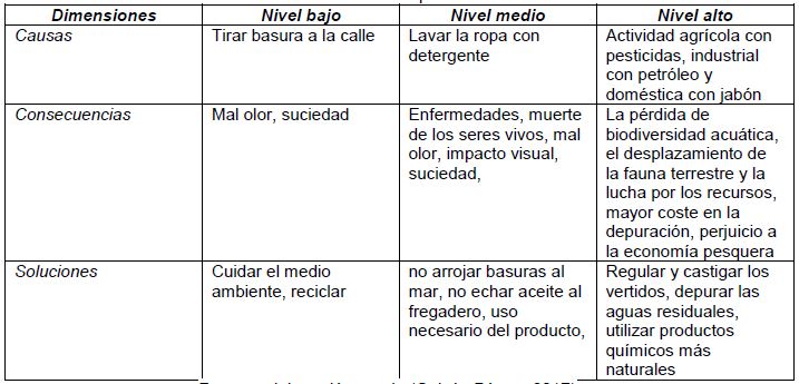 Asimismo, debe destacarse también cómo la aplicación del recurso educativo favoreció el aumento de la concienciación en torno a la temática, hecho que se constata en el registro de las soluciones identificadas en los mapas, como por ejemplo, actitudes de responsabilidad individual: “usar menos productos tóxicos”, “aprovechar justo el agua necesaria” y “no utilizar el “wáter” como una papelera”. De igual manera se constató en las soluciones colectivas: “vigilar y sancionar los episodios de contaminación”, “regular el uso de sustancias tóxicas en los procesos productivos” y “concienciar a la población para disminuir la contaminación”.