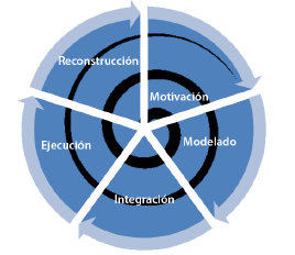 Durante el ejercicio académico fue posible la creación de una propuesta constituida de cinco momentos principales llamados: motivación, modelado de ideas, integración de conocimiento, ejecución y reconstrucción; la cual fue ideada como una espiral para permitir la continuación del trabajo. Lo anteriormente expuesto por cuanto se considera que el proceso de enseñanza-aprendizaje no tiene un final propiamente diseñado; y la obtención de conocimiento puede ser la base para alcanzar el nuevo. Desde esta perspectiva epistemológica, no interesa la reproducción del conocimiento, sino la creación del conocimiento.