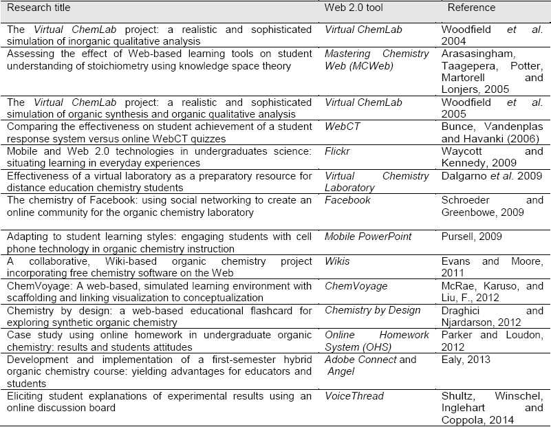 Other authors utilised Web-based learning tools for teaching general chemistry students. They used the software called Mastering Chemistry Web (MCWeb) as homework instruction and learning for stoichiometry subject. The students who used MCWeb performed better than the counterparts who did not, according to knowledge space theory analysis (Arasasingham et al. 2005).