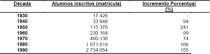 La evolución de la matrícula en educación preescolar creció a ritmos importantes a partir de los años ochenta y noventa del siglo pasado, como se observa en la Tabla 1. Esta situación estuvo asociada al incremento poblacional y el surgimiento de diversas modalidades para la atención educativa de niños y niñas de tres a cinco años de edad. Esta tendencia continuó en las décadas subsiguientes debido, en gran parte, al lugar que ocuparía la educación preescolar en la agenda educativa del país.
