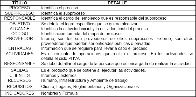 4.3.1.- Caracterización del proceso. - Para garantizar el cumplimiento de este paso, se elaboró una matriz de caracterización que incluye: proveedores internos y externos, actividades, subprocesos, actividades, responsables y clientes internos y externos. A continuación, se realiza una breve descripción de cada subproceso.