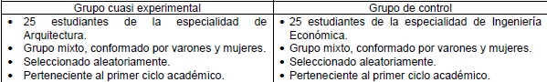 Para aplicar la estrategia metodológica mencionada, seleccionamos una muestra de 50 estudiantes pertenecientes a las áreas de Arquitectura e Ingeniería de la Universidad Nacional de Ingeniería (Lima, Perú). La Tabla 1 permite especificar las características de la muestra seleccionada.
