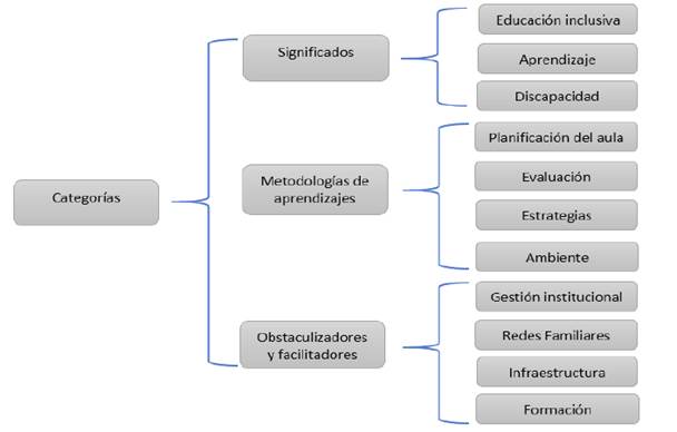 Para responder al objetivo general, primeramente, se analizaron los significados que tienen las agentes educativas sobre educación inclusiva, aprendizaje y discapacidad, seguidamente se determinó las metodologías de aprendizaje utilizadas por las educadoras de párvulo en sus procesos de enseñanza-aprendizaje. Finalmente, se identificaron facilitadores y obstaculizadores en el desarrollo de los procesos inclusivos de niños y niñas con discapacidad de los jardines infantiles de JUNJI, VTF y Fundación Integra de la comuna de Copiapó de la región de Atacama, Chile.