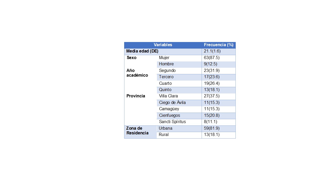 Un total de 72 estudiantes completó el cuestionario, cifra que representa el 62.61 % de la población. Los datos correspondientes a las personas participantes en la investigación se muestran a continuación en la Tabla 1.
