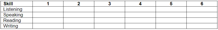 Please estimate your English proficiency by putting a check (√) in the boxes below. Consider the following numbers to answer: