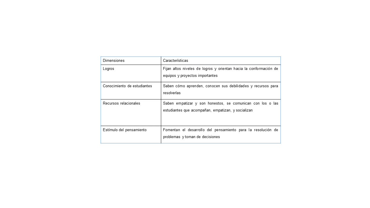 En síntesis, las experiencias de acompañamiento dan cuenta de la figura de las personas tutoras como mediadoras entre los y las estudiantes de pedagogía e integrantes de la comunidad escolar, pero también son las personas que facilitan las condiciones para un acompañamiento relevante que refiere al tutor o a la tutora como quien forma a docentes noveles.