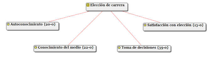 En la Figura 2 se puede observar que, en autoconocimiento, se identificaron 20 citas de las personas participantes; en conocimiento del medio, 22; en toma de decisiones, 35; y en satisfacción con la elección, 13 citas. Las subcategorías que emergieron corresponden a aspectos que son fundamentales de todo proceso de elección de carrera. A continuación, se detalla cada una de las subcategorías: