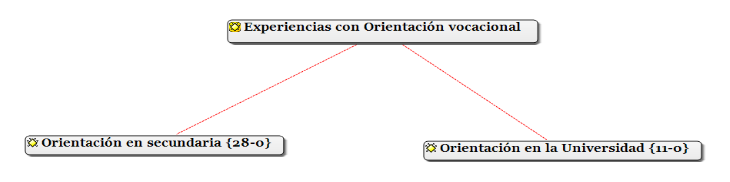 Al explorar en los grupos focales acerca de las experiencias con Orientación vocacional, el estudiantado se refirió tanto a la Educación Diversificada (secundaria) como a la universitaria, según se detalla en la siguiente red semántica: