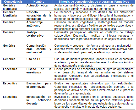 En el caso particular de las carreras de PMM y PMCNyB, de la UCT, estas consideran un total de nueves competencia, entre genéricas y específicas, las cuales se distribuyen en dos de carácter identitario, cuatro genéricas y tres específicas de la profesión docente.