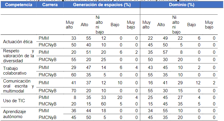 A la luz de los resultados ya expuestos, en lo referido a las competencias genéricas, es posible establecer lo siguiente.