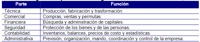 Con respecto a los elementos que constituyen la estructura de la organización, el modelo científico-funcionalista identifica seis partes, cada una de ellas relacionada con una de las funciones que desarrolla la empresa, como se aprecia en la Tabla 2.