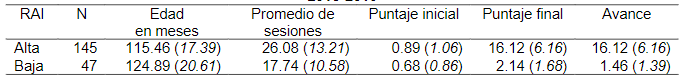 A fin de contribuir a la comprensión de la diferencia entre estudiantes con alto y bajo nivel de respuesta a la intervención, en la Tabla 3 se presenta la comparación entre ambos grupos en función de las restantes variables analizadas.