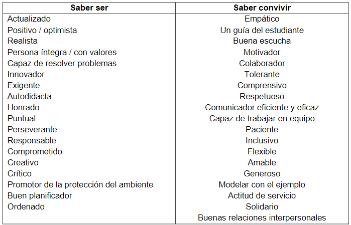Debido a la variedad de respuestas obtenidas para el saber ser y convivir no se realizó un análisis utilizando la herramienta de procesamiento cualitativo, sino que, se incluye a continuación una tabla con aquellos saberes mencionados por las personas docentes consultadas.