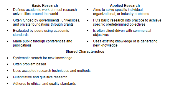 To summarize, Table 2 clarifies how applied and basic research can be differentiated and what aspects they have in common.
