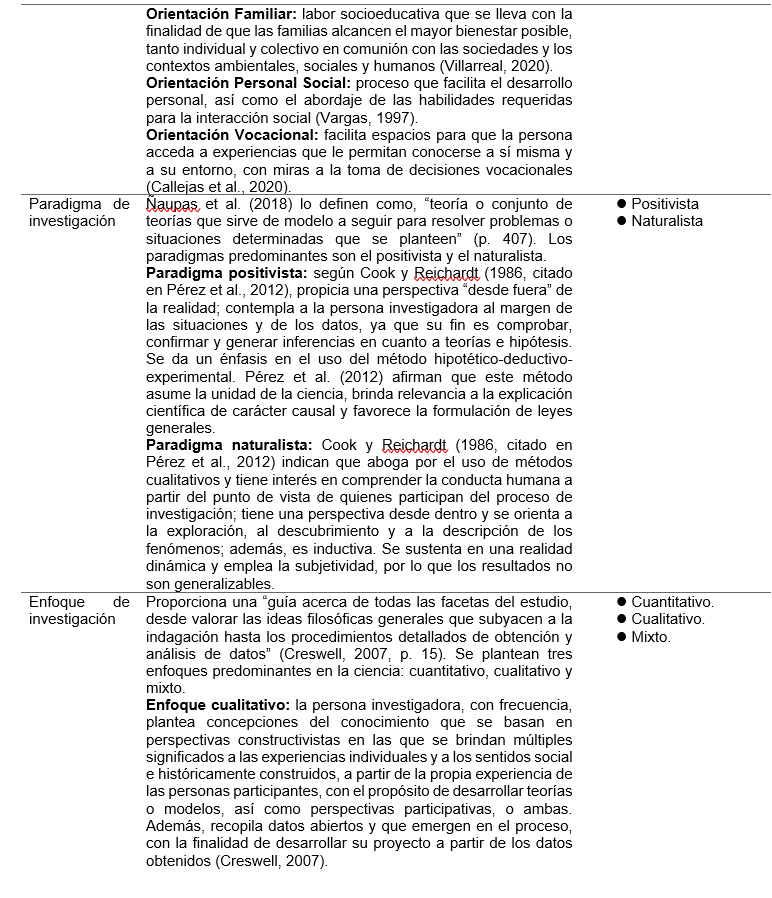 Pese a que el principal nicho laboral de las y los profesionales en Orientación es el contexto educativo, en los últimos años el interés de investigación ha estado centrado en aspectos psicosociales. Se considera la población adulta como principal fuente de información en temas relacionados con el estudiantado y las situaciones que enfrentan, pero ajenos al proceso de enseñanza-aprendizaje, como sucedía en otros periodos. Es importante para el equipo de investigación retomar este aspecto por parte de las y los profesionales en Orientación de las instituciones educativas.