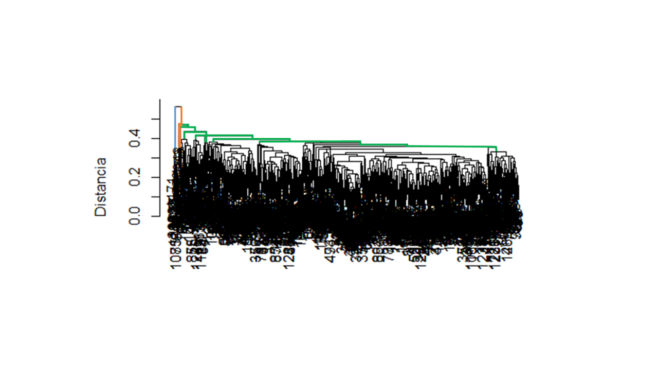 Como guía para la selección de grupos, según Aguilar et al. (2020), se utilizan los dendogramas, que son representaciones gráficas en forma de árbol que buscan representar los clústeres formados con base en el algoritmo de agrupación o conglomerados. A partir de la agrupación de datos, se pueden establecer distancias o disimilitudes.