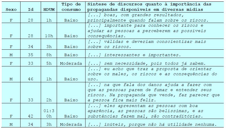 Outros participantes do estudo consideram as propagandas sobre substâncias psicoativas sem nenhuma utilidade, conquanto são informações aparentemente já apreendidas.