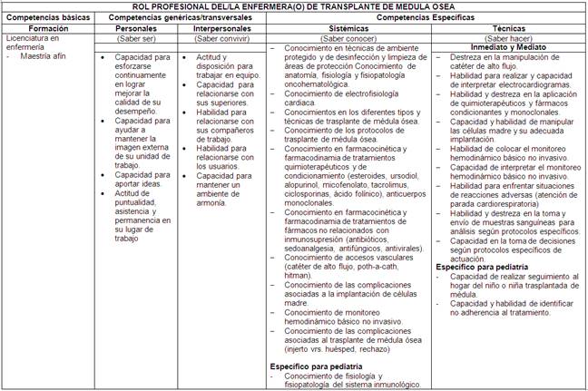 En cuanto al rol enfermero ejemplificado, surge como producto del trabajo del equipo especializado en esa área específica del cuidado; sin embargo, es importante aclarar que los protocolos en mención desglosan una serie de habilidades, capacidades y destrezas que determinan la actuación de los profesionales en enfermería de los que, como producto de esta matriz, se sugirió el anexo de un instrumento adicional que considera estas competencias técnicas las cuales, posteriormente, podrían ser utilizadas para la construcción curricular de los procesos de inducción y reinducción en estas áreas, ya que su contenido sirve de insumo para el desarrollo de la propuesta curricular para dicho fin, como proyecto pedagógico organizacional, de acuerdo con lo que sugiere Peres (26).