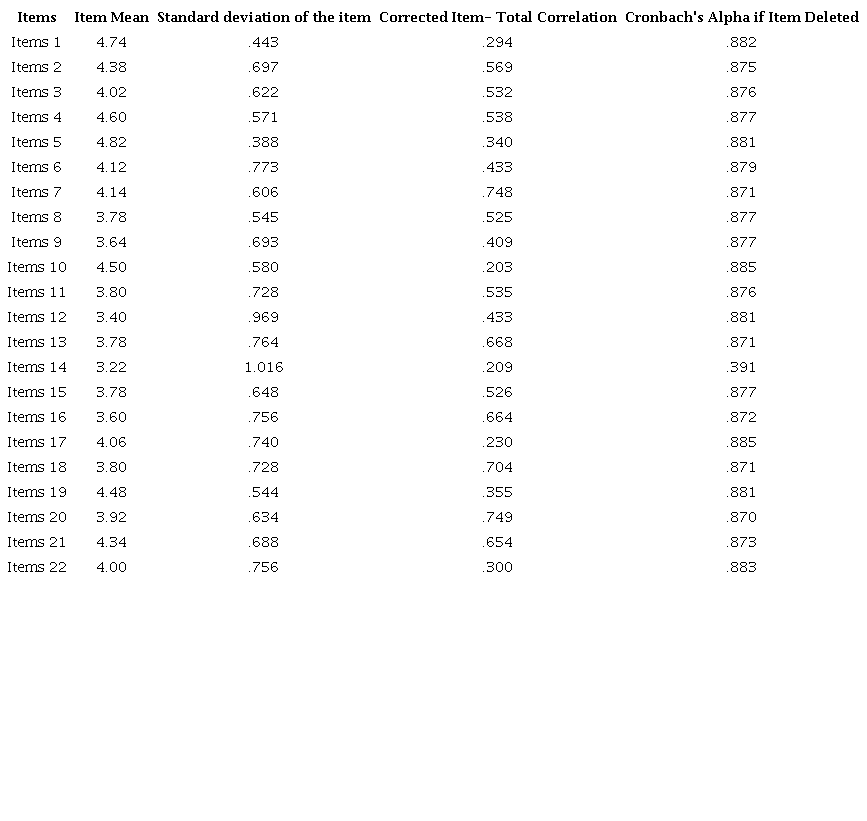 All the instruments described in this section has consistently performed reliability with internal consistency >.8522.