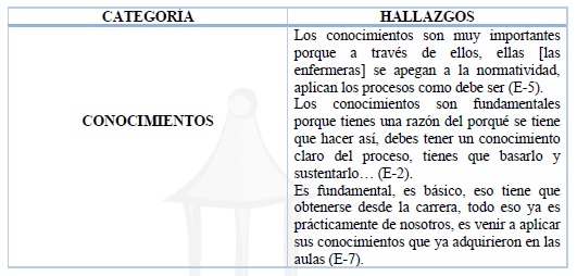 Finalmente, el conocimiento que debe poseer el personal de Enfermería es indispensable para desempeñarse dentro de un área específica; de igual modo, es esencial que dentro de un equipo de trabajo los integrantes realicen la práctica sustentada en el conocimiento científico, ya que el éxito de este tipo de equipos depende, en gran medida, de la capacidad de las supervisoras para identificar y saber utilizar el conocimiento de su personal.