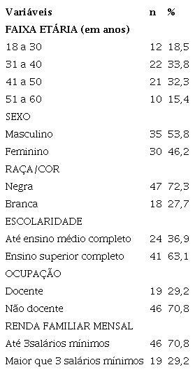 A tabela 1, descrita abaixo, apresenta as características sociodemográficas da população estudada.