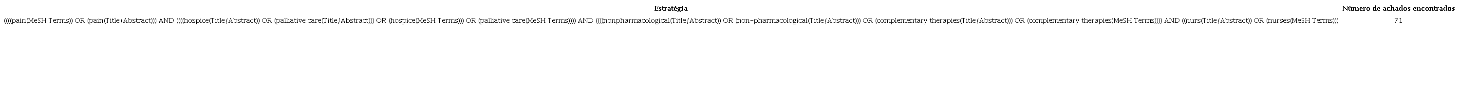 No que concerne ao conceito (C), pretendem-se estudos cujo foco sejam as intervenções não farmacológicas implementadas com o objetivo de aliviar a dor.