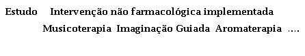 Para a questão de revisão, ''Em que contexto são implementadas as intervenções não farmacológicas?'' as tabelas poderão incluir os dados apresentados na figura Tabela 5.