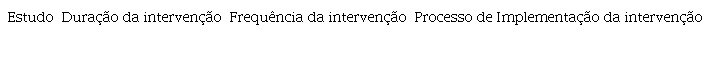 Para a questão de revisão, ''Quais as características destas intervenções?'' as tabelas poderão incluir os dados apresentados na figura Tabela 4.