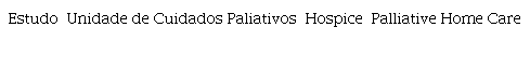 Quanto ao contexto (C), serão incluídos estudos realizados no âmbito dos cuidados paliativos (unidades/serviços de cuidados paliativos e hospice care)