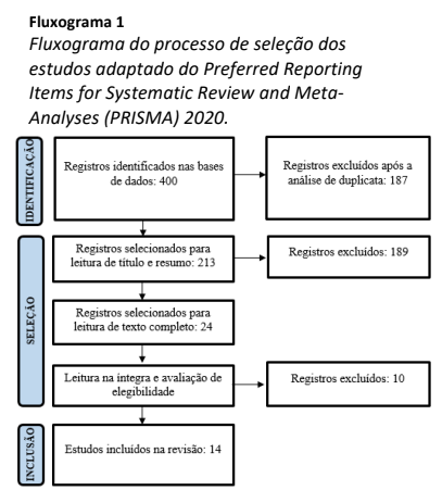 Em seguida, foi realizada a pré-seleção dos artigos com análise da temática e tipo de estudo por meio da leitura do título e resumo. Foram excluídos nesta etapa, estudos sem relação direta com a temática, ou seja, traziam estudos com aplicativos móveis, mas sem relação com o DM1 (n=149), estudos de revisão (n=38), editorial (n=1) e texto completo indisponível (n=1). Na etapa seguinte, foi considerada a elegibilidade dos artigos por meio da leitura na íntegra (n=24) e eliminadas as produções que não responderam à questão norteadora do estudo (n=10). Assim, foram incluídas 14 produções científicas na amostra final conforme o fluxograma.