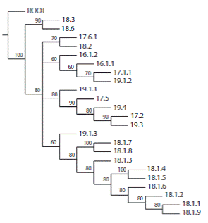 El PAE de la costa Atlántica resultó en un cladograma (Fig. 4) en el que se pueden distinguir cuatro biorregiones (Fig. 6). El PAE de la costa Pacífica obtuvo 10 cladogramas igual de parsimoniosos, con los cuales se construyó un cladograma consenso por Majority Fools (Figs. 5 y 6), en el que se distinguen cinco biorregiones: