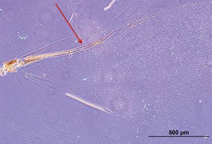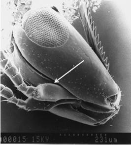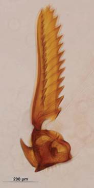 Females of the five Hexapus morphotypes studied had two free mandibular appendages (Fig. 1) and males with functional mid legs (hexapodous).They were the passive pollinators of five New World fig species of section Pharmacosycea, subsection Petenenses. The females are further characterized by an elongate head with a gular bridge without a sclerotized median carina or a felted line, mandibles with one gland only, absence of labrum, bilobed clypeus with a median setose carina, pedicel without axial spines, third segment with three completely fused anelli and a short unsegmented acuminated projection, labiomaxillary complex with distinct stipes and galea, bacilliform process pointing backward, segmented labium, forewing closed costal cell, spurious veins and moderate pilosity, and a twelfth flagellomere.