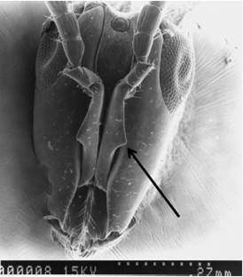 The pollinators of section Pharmacosycea : Currently, Tetrapus has been assumed to be the exclusive passive pollinator of section Pharmacosycea (Corner, 1960; Ramírez, 1970; Bouček, 1993; Ramírez, 1994; Wiebes, 1995). Ramírez (1978; 1991) considered that Tetrapus seemed to be composed of two well defined groups: in one group (Tetrapus), the females have one mandibular appendage and the males are tetrapodous; in the other, the females have two mandibular appendages and the males are hexapodous. (Bouček, 1993) referred about three Tetrapus with the female mandible split from the apex; while (Wiebes, 1995), mentioned two saw-like appendages.