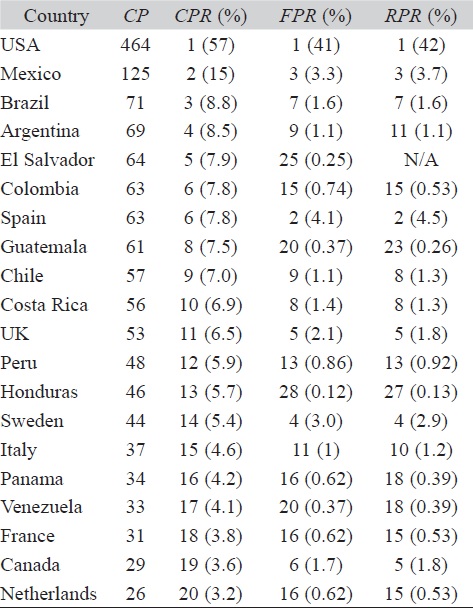 Interestingly, internal collaboration among Honduras institutions is small, representing about 10 % of all papers in the database (Table 2). International collaboration is reported in more articles. There are three basic groups of countries that have international scientific collaboration with Honduras. The first group is composed of the largest scientific powers North and South of Honduras, namely the USA, Mexico, and Brazil; the second group is made up of smaller countries that are culturally close to Honduras, and the third group is composed of distant countries that are far more advanced than Honduras (Table 2).