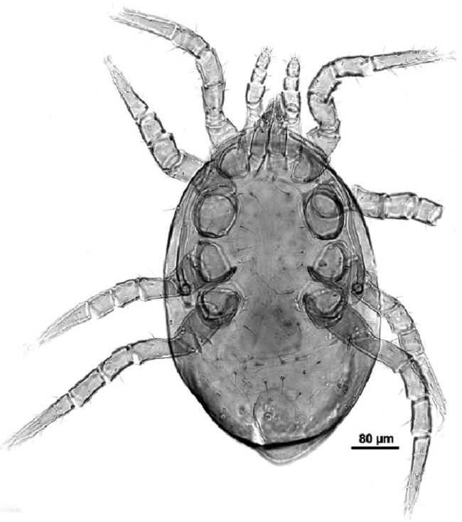 Otro organismo asociado fue el ácaro Proctolaelaps aff. antiquusTreat & Niederman (1967) (Mesostigmata: Melicharidae) (Figura 10), del que se encontró un ejemplar femenino en la vista interna del palpo de una hembra dePrestonia. Se han reportado varias especies asociadas a este género de ácaro en la proboscis de algunas noctuidas, lo que de acuerdo con Treat y Niederman (1967), sugiere que pueden habitar flores o frutos en descomposición.