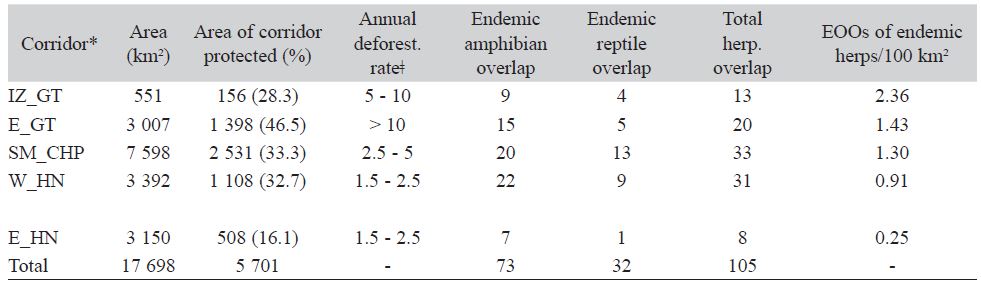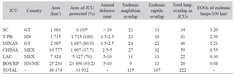Key words: endemism, herpetofauna, Nuclear Central America, Panthera onca, umbrella species.