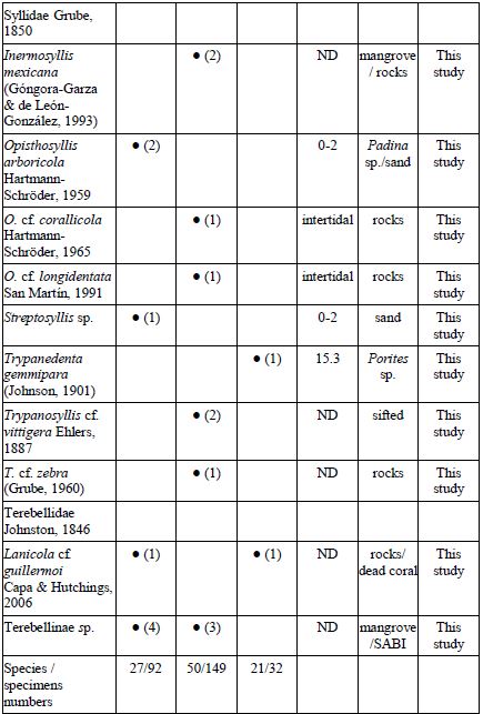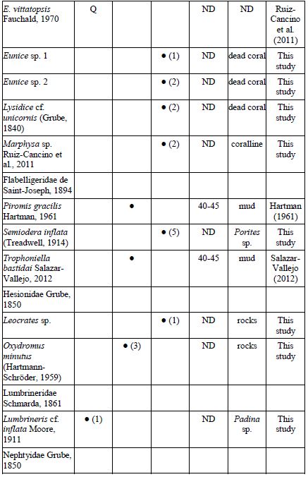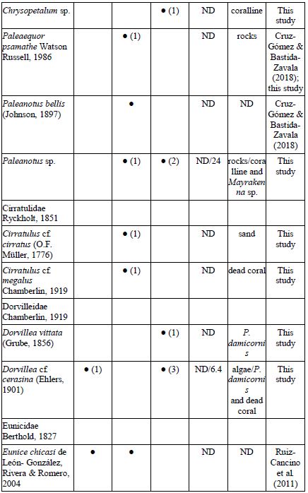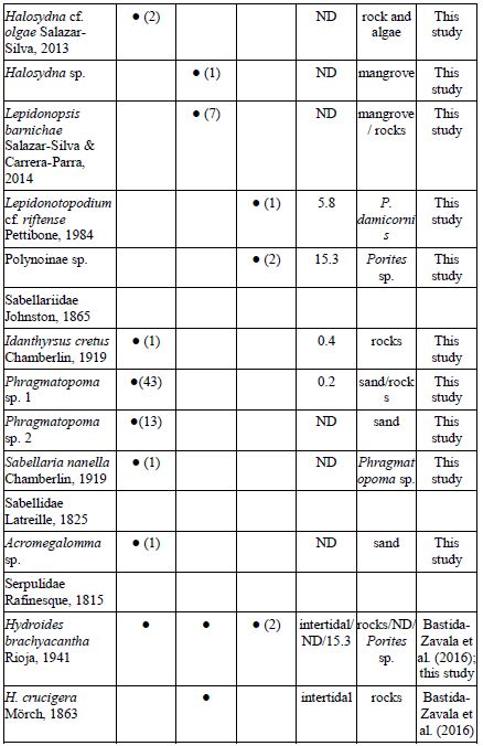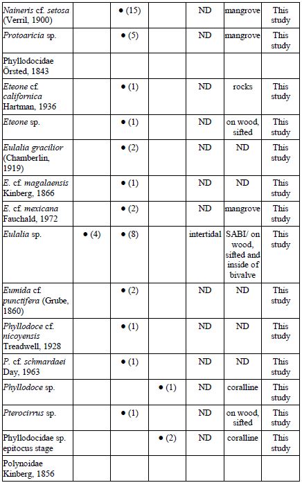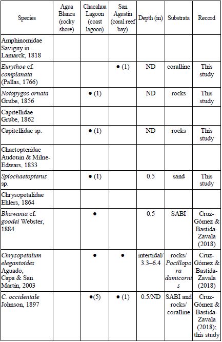 Key words: Agua Blanca, Chacahua Lagoon, checklist, San Agustín, marine worms, southern Mexican Pacific.
