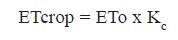 where ETcrop represents crop water requirement (mm/day), ETo represents evapotranspiration of a reference crop under specified conditions calculated by the evaporation pan method, and Kc is the crop water requirement coefficient for sugarcane.