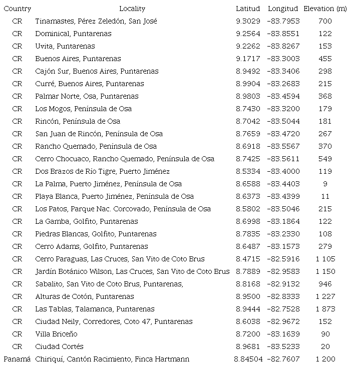 The impact of the Coto Brus mountain region’s development was the substantial loss of premontane and low montane forests (Sansoneti, 1995; Quesada-Román & Díaz-Bolaños, 2019), today restricted to the protected La Amistad International Park.